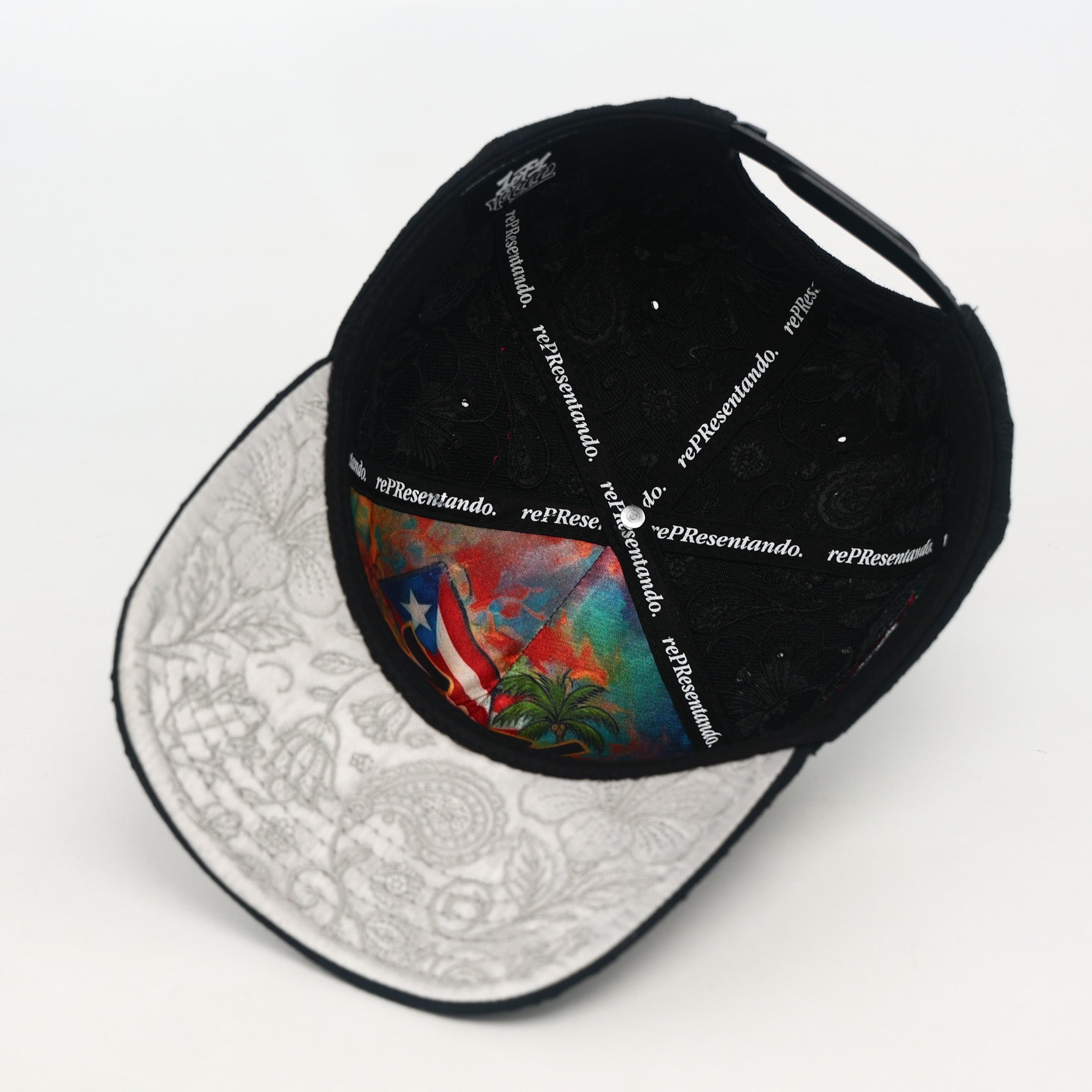 This Black Friday exclusive celebrates Puerto Rico’s baseball legacy with a one-of-a-kind design. Crafted in a black-on-black paisley fabric, it features bold 3D PR embroidery on the front, the iconic Hiram Bithorn Stadium patch on the side, and the 1OF1 signature logo. Inside, custom sublimated artwork and “rePResentando” taping make every detail stand out.